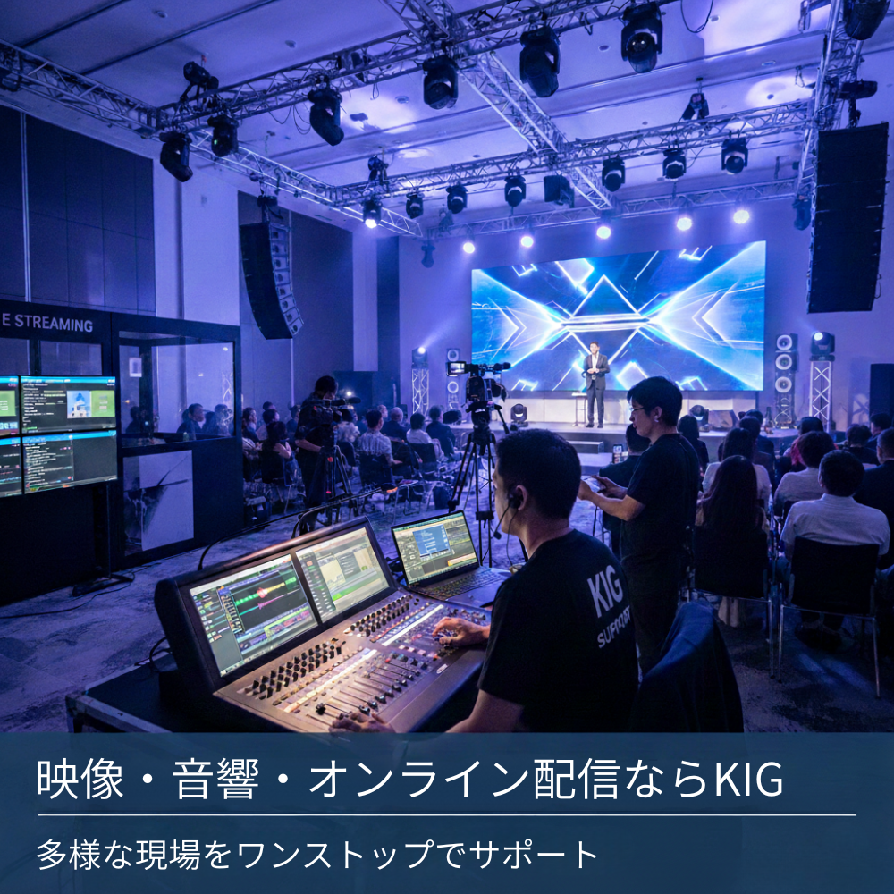 当社は、イベントや展示会、会議など幅広いシーンにおいて、高品質な映像と音響で素晴らしい演出を実現し、企業のブランディングやイベントの成功に貢献します。